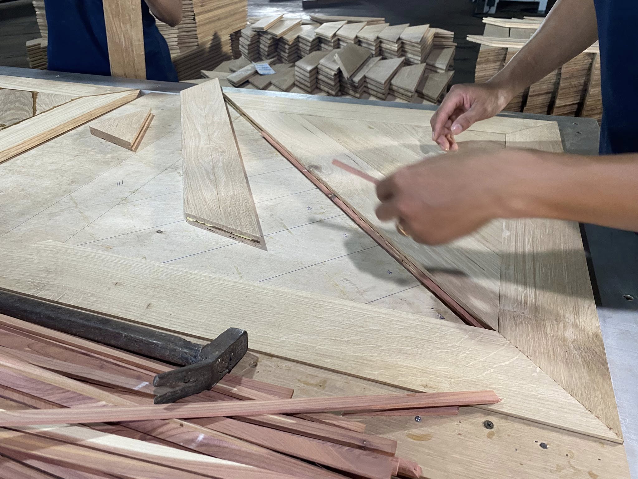 Với đôi tay khéo léo và con mắt chuẩn xác, từng chi tiết hoa văn gỗ được đo, cắt, ghép một cách tỉ mỉ. Mỗi đường nét khớp hoàn hảo là kết quả của hàng giờ tập trung và kinh nghiệm lâu năm.
