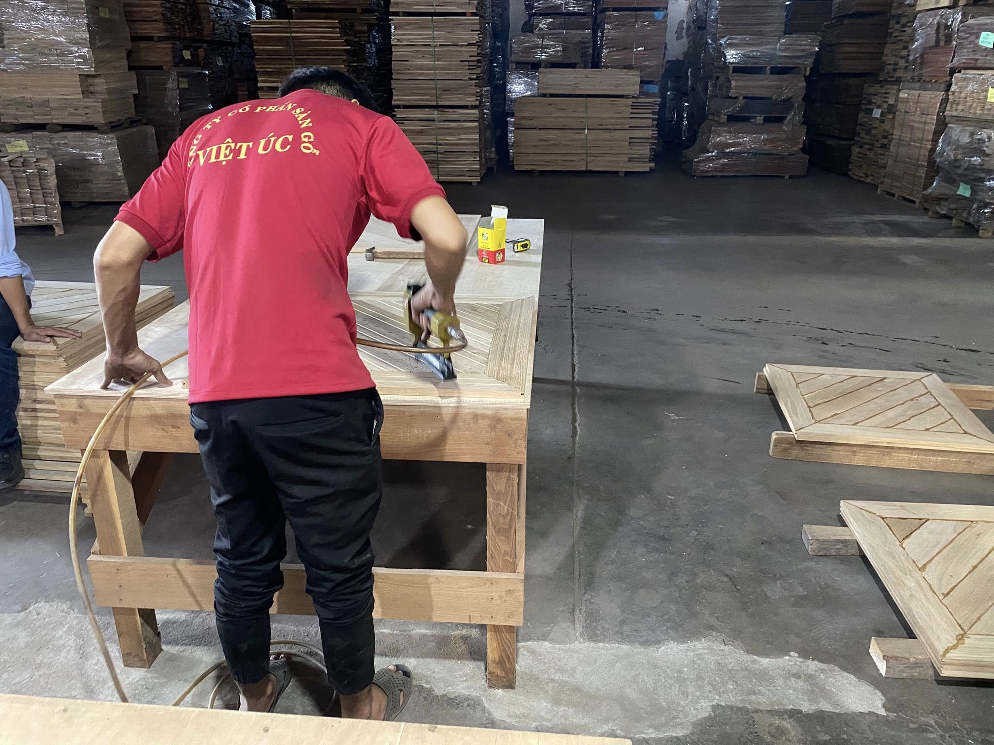 Tại Nhà Máy Sàn Gỗ Việt Úc (diện tích hơn 10.000m², đặt tại Biên Hòa – Đồng Nai), mỗi tấm sàn gỗ không chỉ đơn thuần là sản phẩm, mà còn là tâm huyết của những người thợ lành nghề.
